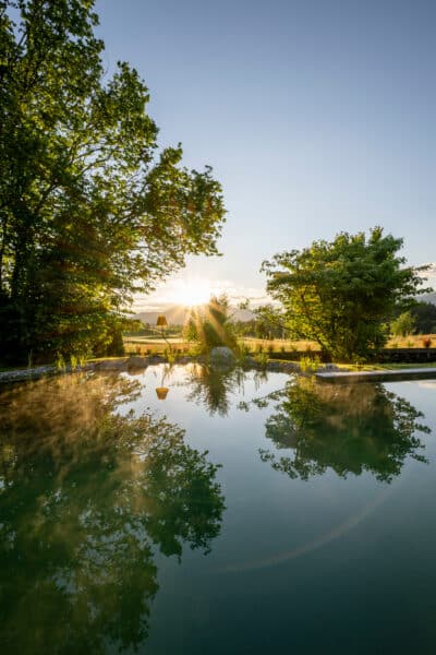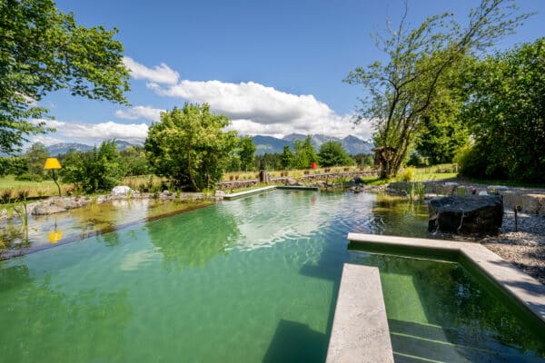 (May-Oct) Wellness becomes completely natural: Between old trees, sunbathing islands and the clear water of the natural pool you will find quiet places to immerse yourself, drift and breathe deeply.
